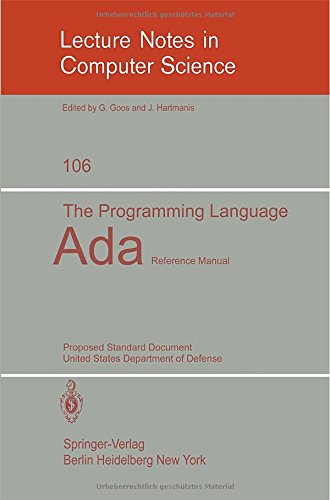 You can find this The Programming Language Ada: Reference Manual. Proposed Standard Document United States Department of Defense (Lecture Notes in Computer Science) by look at the bookstore or Mall. Just viewing or reviewing it might to be your solve issue if you get difficulties for ones knowledge. Kinds of this e-book are various. Not only simply by written or printed but also can you enjoy this book simply by e-book. In the modern era like now, you just looking by your local mobile phone and searching what your problem. Right now, choose your own personal ways to get more information about your guide. It is most important to arrange yourself to make your knowledge are still update. Let's try to choose proper ways for you.